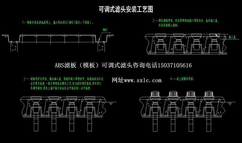 水廠濾池氣水反沖洗濾池常用的濾板有預(yù)制濾板和現(xiàn)澆整體濾板兩種:濾頭分為固定式和可調(diào)式兩種.固定式適應(yīng)于預(yù)制濾板:可調(diào)式長(zhǎng)柄濾頭特別適應(yīng)于現(xiàn)澆濾板.也適應(yīng)于預(yù)制濾板.QSK-ll型可調(diào)式長(zhǎng)柄濾頭原料采用高強(qiáng)度ABS顆粒樹(shù)脂(簡(jiǎn)稱(chēng)ABS工程塑料)經(jīng)高溫?zé)崛苡删苣ゾ叱尚汀?烧{(diào)式濾頭主要用:濾帽、濾桿、預(yù)埋座組成,濾桿上設(shè)有調(diào)節(jié)螺紋,可供上下調(diào)節(jié);且設(shè)有調(diào)節(jié)瓣與預(yù)埋座內(nèi)調(diào)節(jié)瓣防脫條結(jié)合,可控制濾桿調(diào)節(jié)精度,同時(shí)固定其位置。